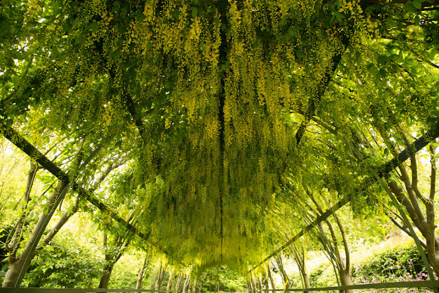 A main feature of the garden is the Laburnum Arch which has come into blossom in the past week and as you can see is quite spectacular. Another feature is the Wisteria on the wall which is really beautiful.
